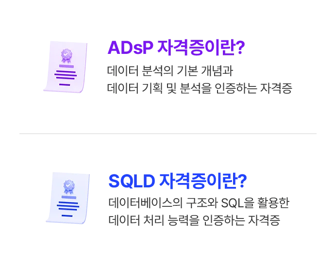1) 대상 : ADSP/SQLD 패키지 강의 신청 후 2가지 시험에 모두 합격한 분에 한 해 신청할 수 있습니다.